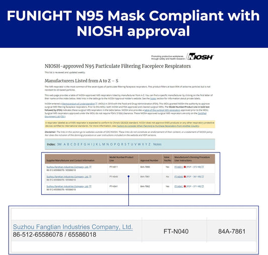 Funight N95 Mask 20 Pack NIOSH Certified Respiratory Particulate Filtering Face Mask Personal Protective