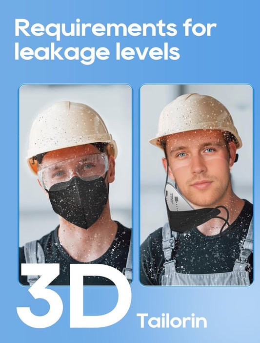 Funight KN95 Adult Masks 50 Pack 5 Layers Black Disposable Dust Masks with Filtering Efficiency≥95%